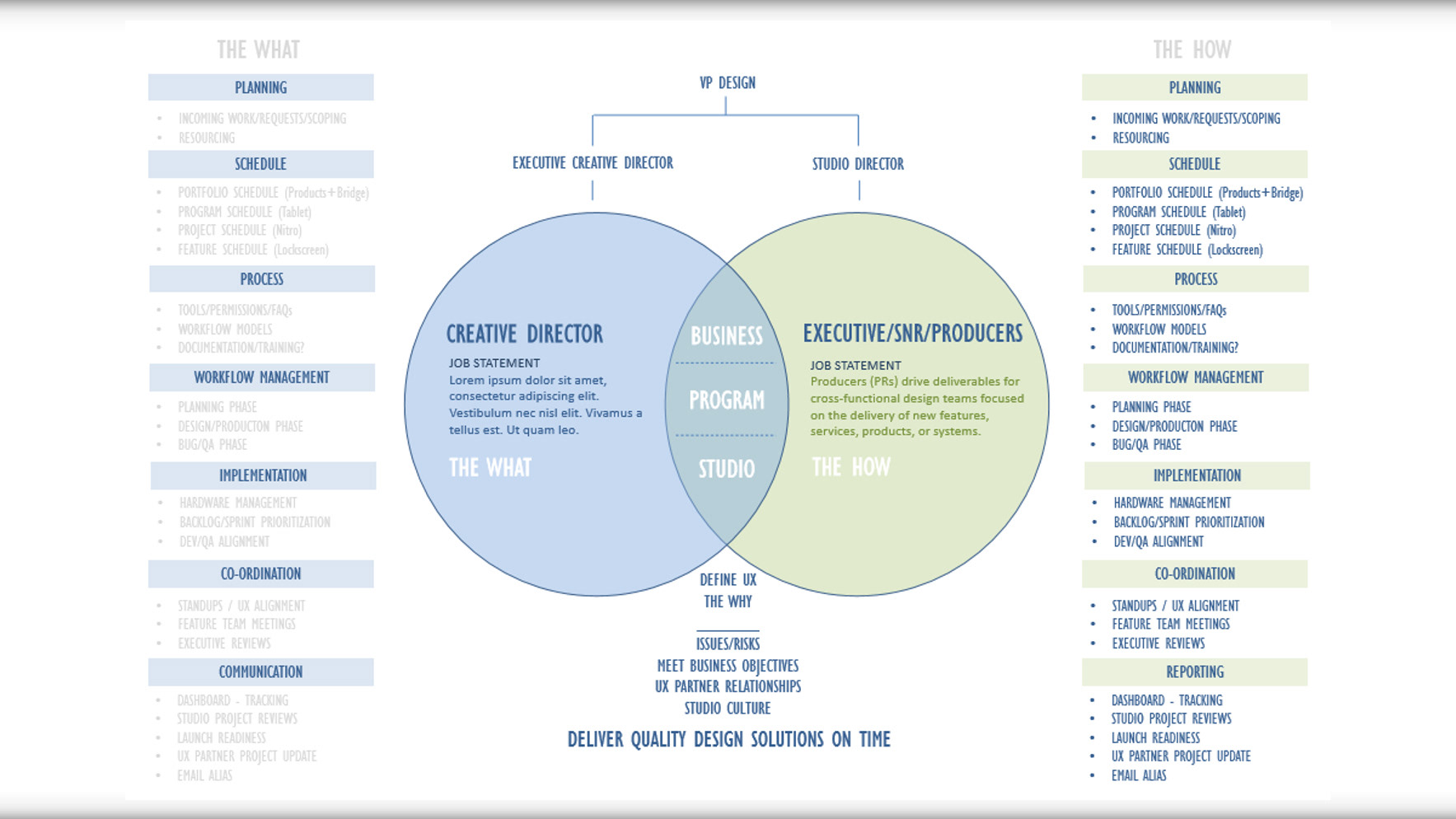 • Compose design program PRFAQ’s, business review docs, and work-back plans